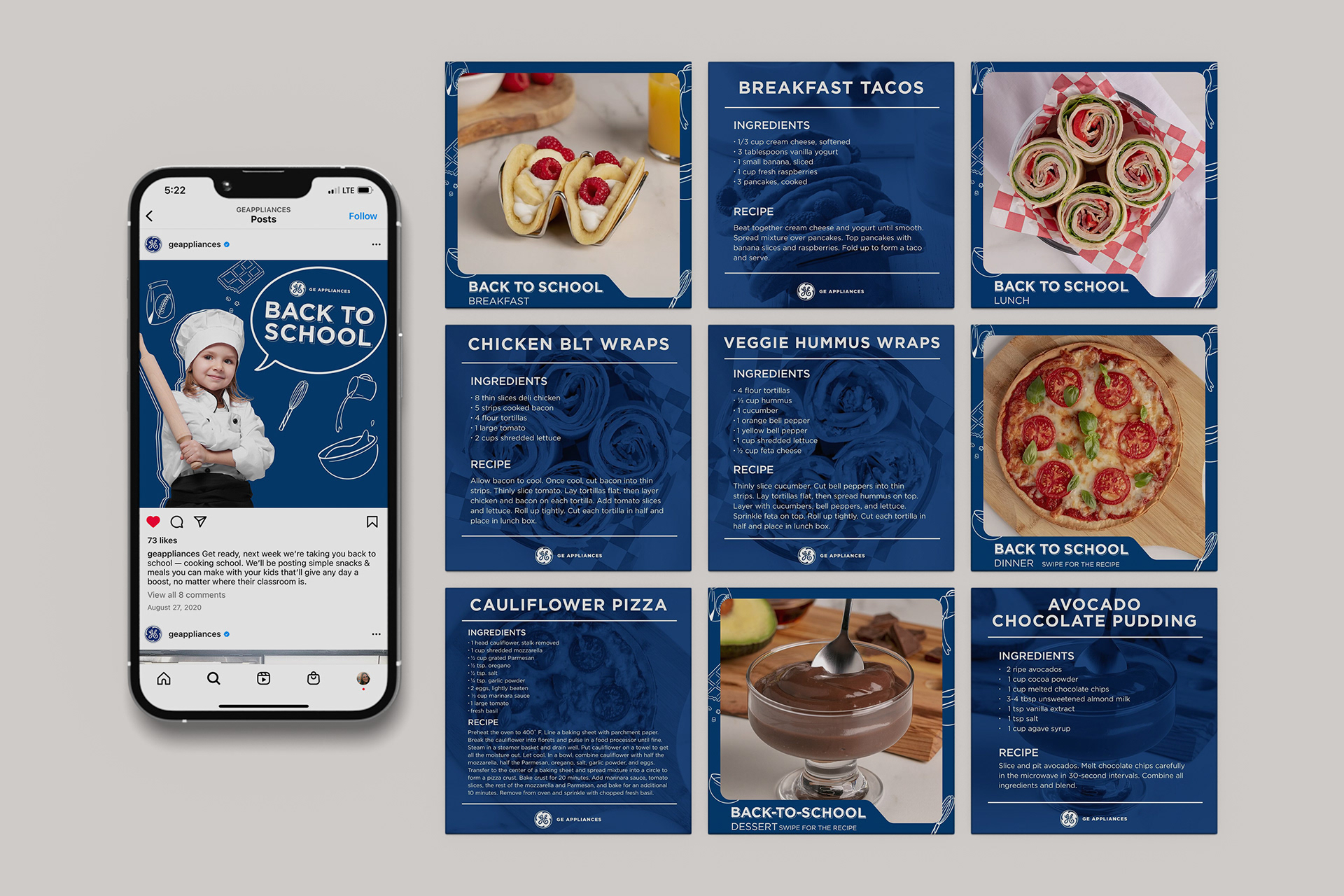 For the GE brand, we chose to focus on back to school recipes for busy parents who can use key features on their GE kitchen appliances to make life easier. We came up with recipes for breakfast, lunch, dinner, and dessert. Oh and each recipe features a healthy hidden ingredient that will satisfy even the pickiest of eaters.